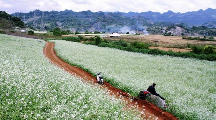 Du khách có thể tham quan và chụp ảnh tại các cánh đồng cải trắng rộng lớn. Mùa cải thường vào tháng 11 đến tháng 2, khi những thửa ruộng cải khoe sắc trắng tinh khôi dưới ánh nắng xuân.